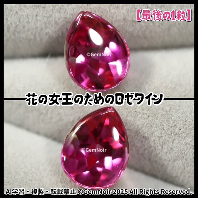 〜残されし最後の1粒〜【花の女王のためのロゼワイン・夜明けの章】 ほんのりバイカラーの合成サファイア ペアシェイプバフトップの魔石ルース 10.2×8×6mm前後 4.02ct 《華やかマゼンタ》品番:5Z7D-202504