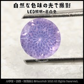 弱めの蛍光灯の光→より白く淡い紫、強めの蛍光灯の光→より白く淡い青紫〜グレーブルーに見えることがあります。