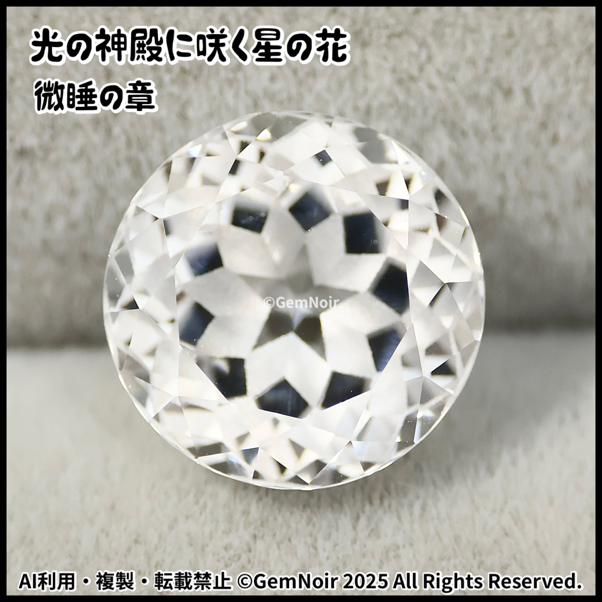 【光の神殿に咲く星の花・微睡の章】 合成サファイア 星が潜む満開の花のラウンドカットの魔石 ルース 2.81ct 8×8.1×5.3mm前後 《何色にも染まらないカラーレス》品番:CXKL-202512 ファンタジー世界