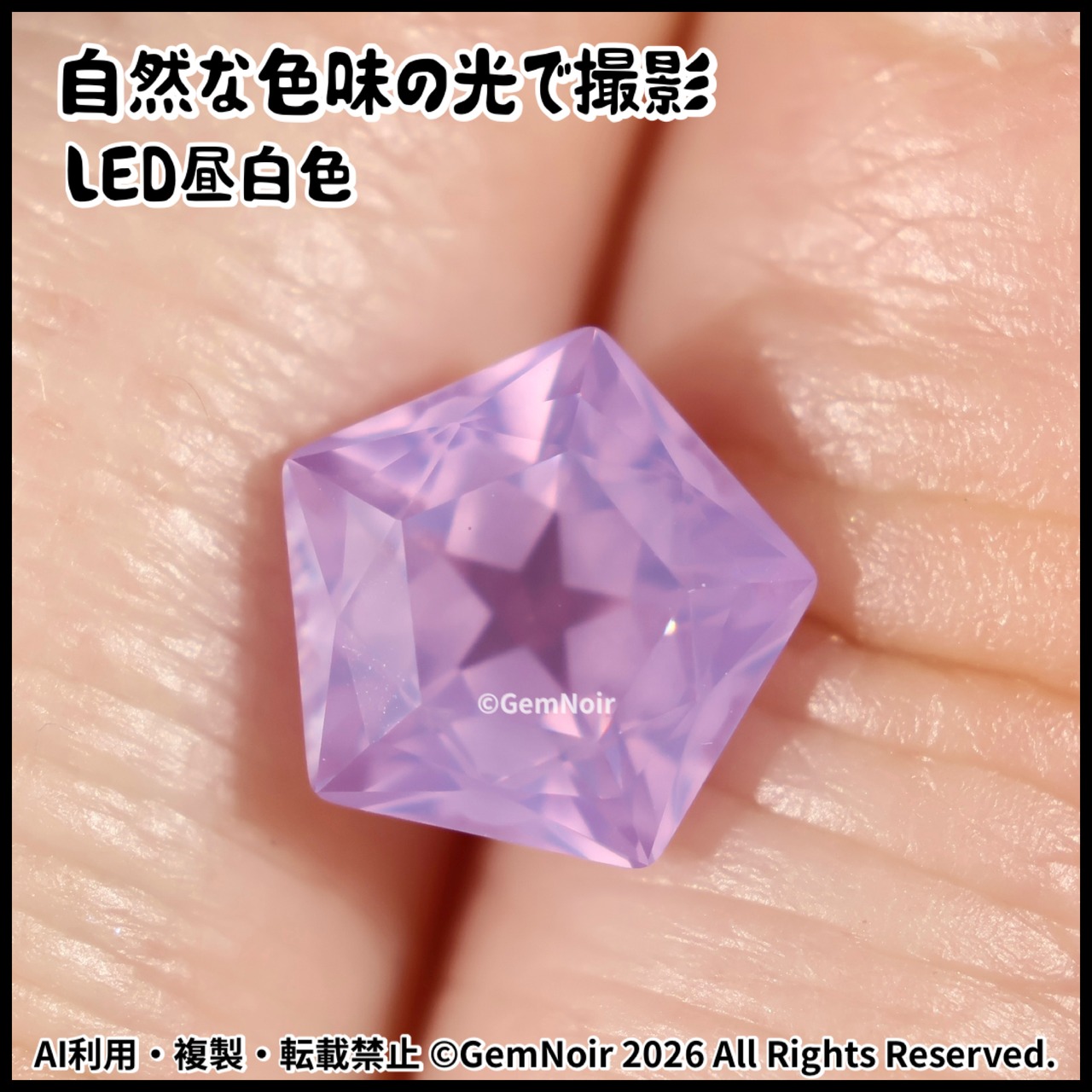 【夢と夜明けの境界で輝く守護石・第2章】 宝飾用特殊ガラス 星が潜む五角形の魔石 ルース 2.87ct 8.1×8.1×5.7mm前後 《メルヘンなパステルパープル》品番:YDTO-202505 ファンタジー世界