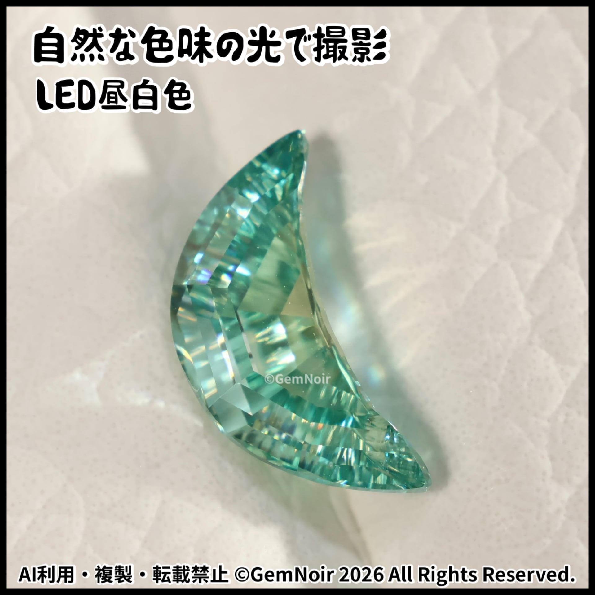 合成モアッサナイト【人魚の国を見守る三日月・残されし最後の1粒】三日月カットの魔石 ルース 1.06ct 10×4.9×3.6mm前後 《南国の海のブルーグリーン》品番:7QJJ-189912 ファンタジー世界