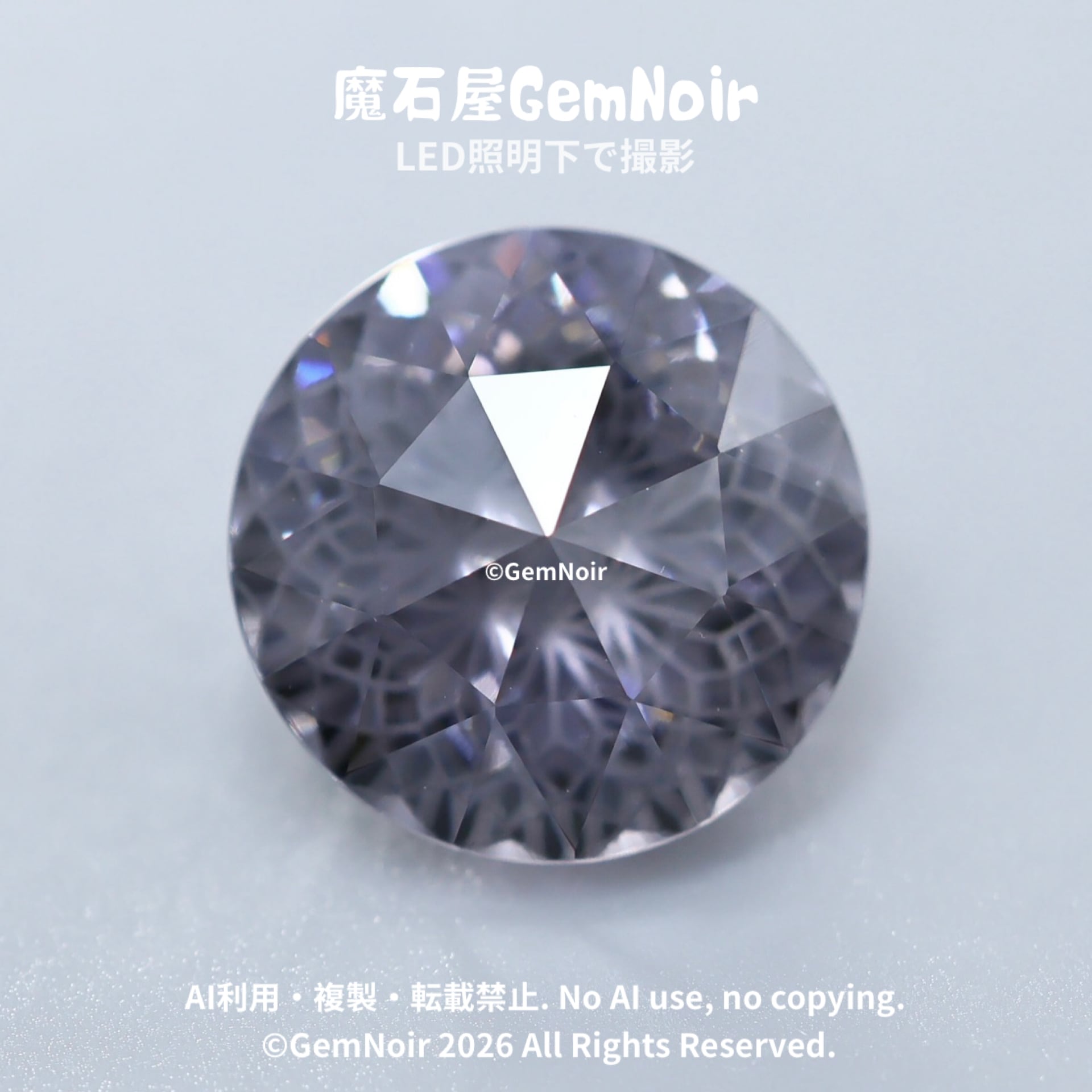 聖銀に封印されし満開の花|人造キュービックジルコニア ルース|グレー系・光属性|凍てつく満開の花のラウンドカットの魔石|Hand cut|Gray artificial cubic zirconia| Round cut of a frozen, fully bloomed flower | Fantasy Gem|品番:33JK-202602