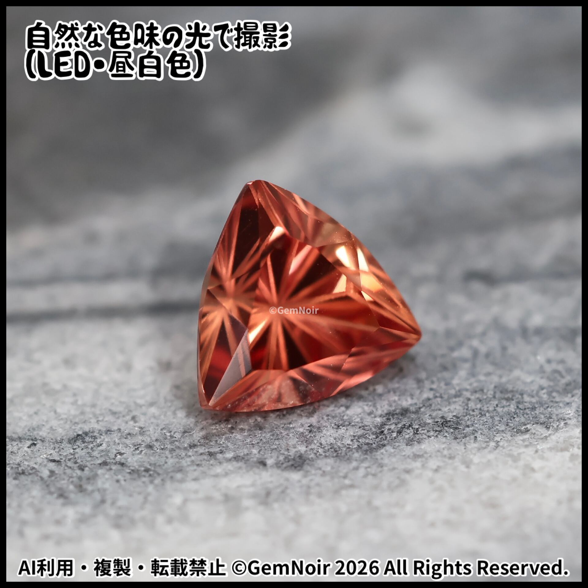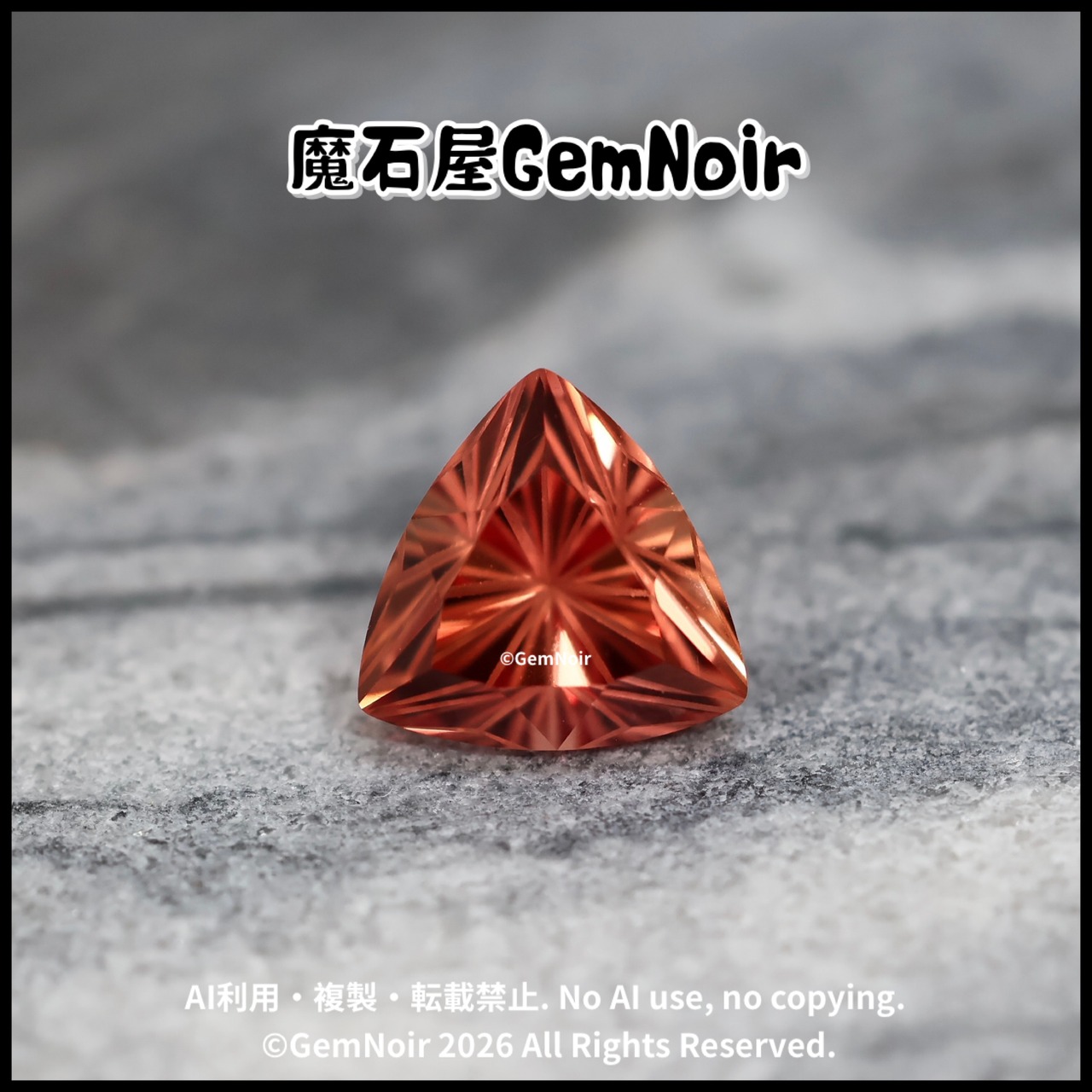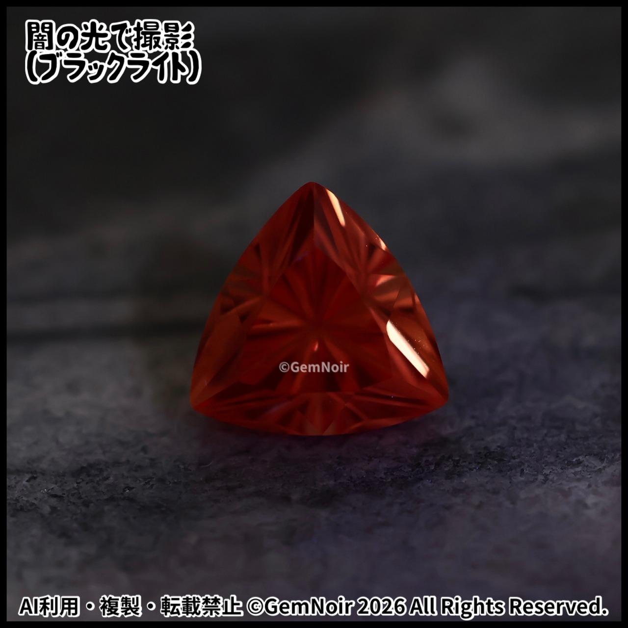 合成サファイア|トリリアントカットの魔石【火炎竜を呼び起こす魔石】《夕焼け色》2.77ct 8.2×8.3×6mm前後 |ルース|合成石|特殊カット|人造石|品番:VOIU-189912