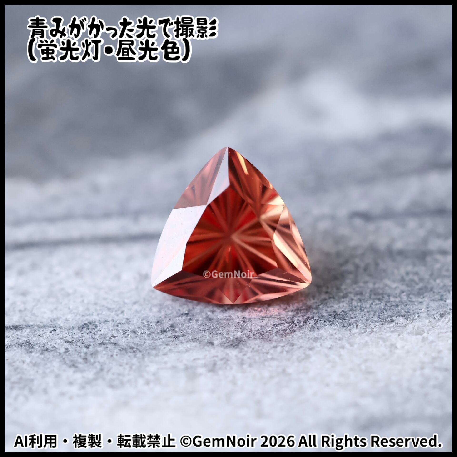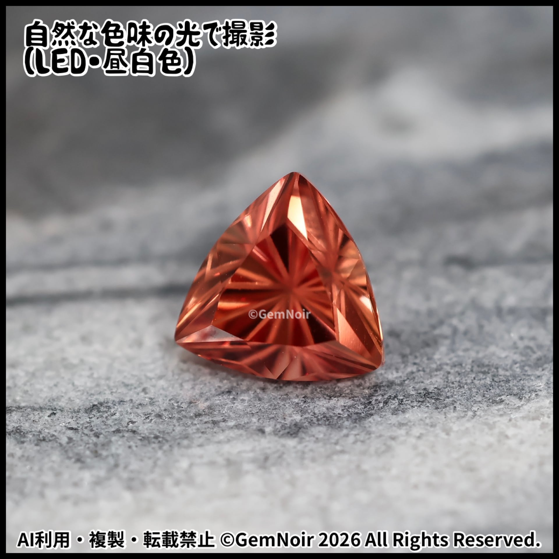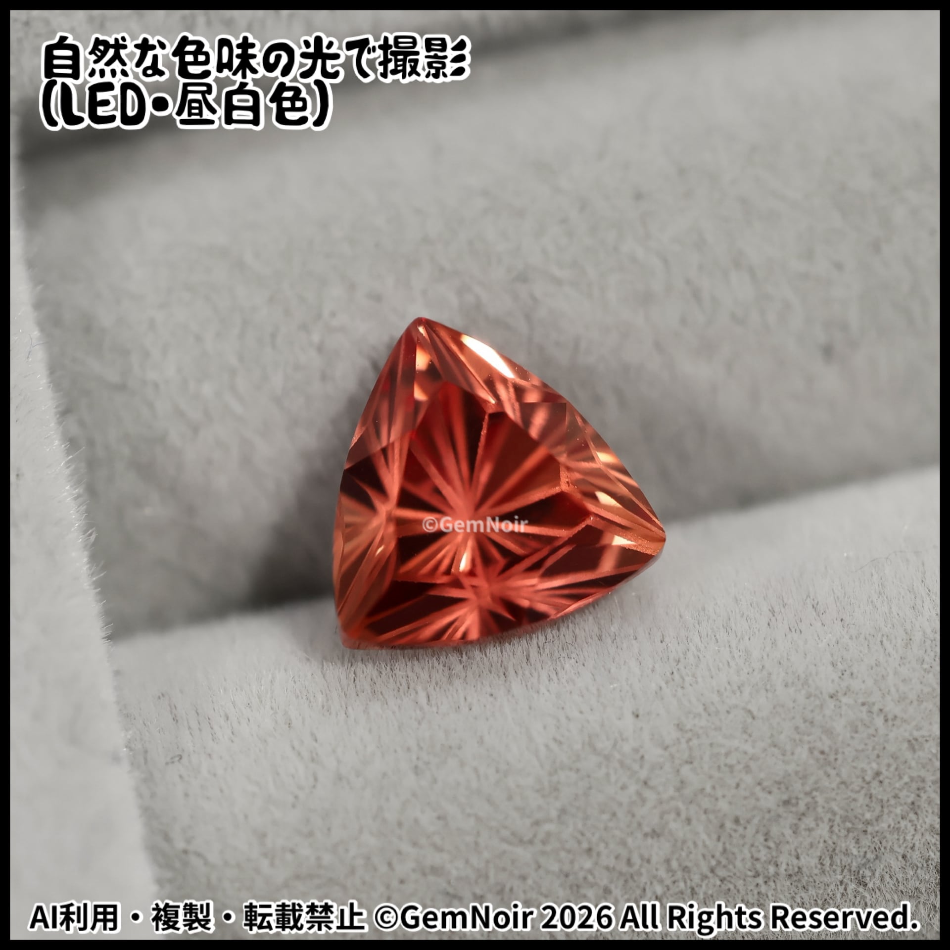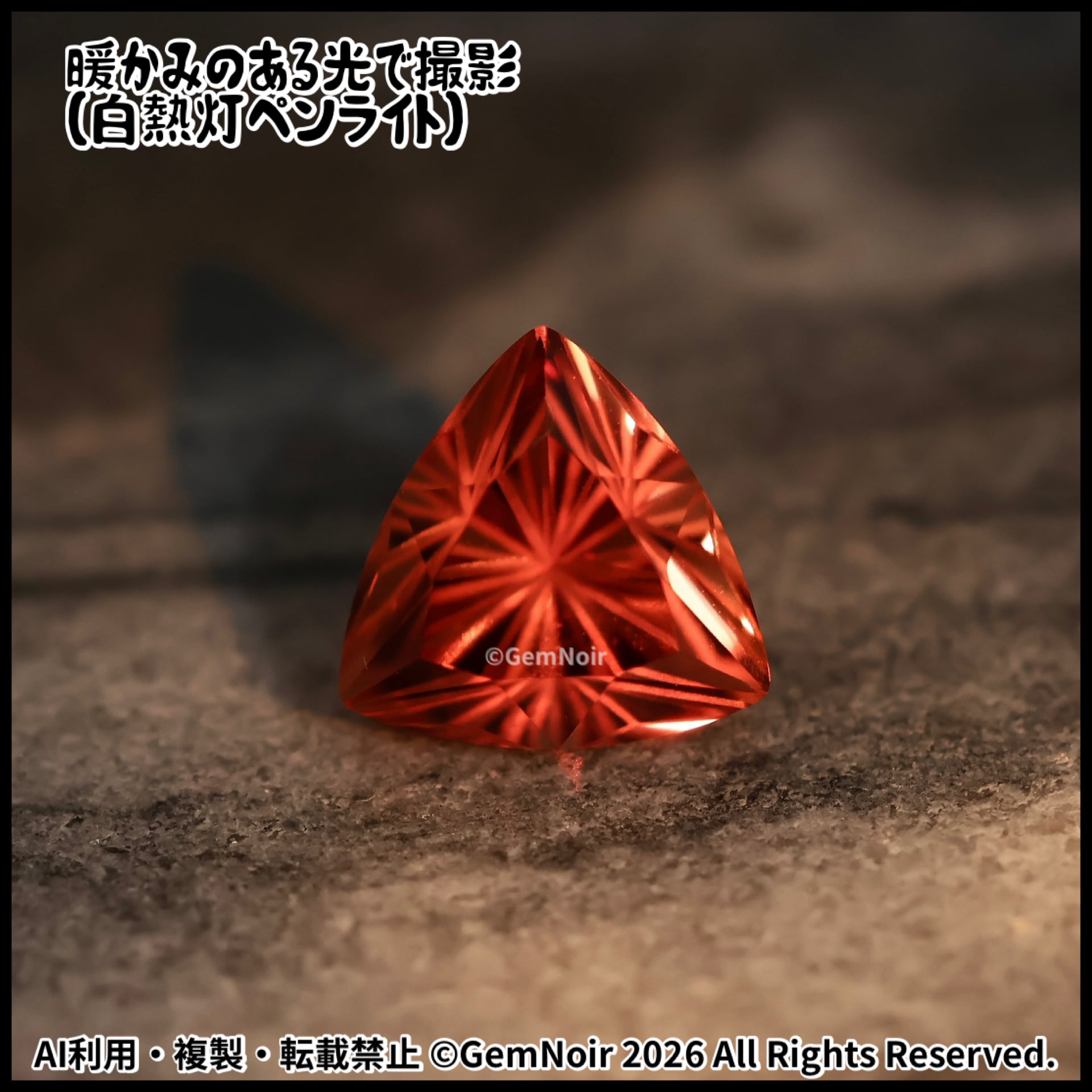 合成サファイア|トリリアントカットの魔石【火炎竜を呼び起こす魔石】《夕焼け色》2.77ct 8.2×8.3×6mm前後 |ルース|合成石|特殊カット|人造石|品番:VOIU-189912