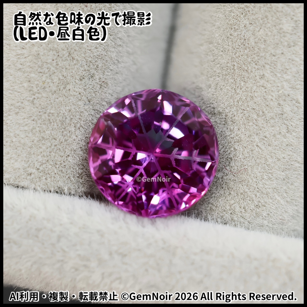 バイカラーの合成サファイア|雪が潜むラウンドカットの魔石【幻惑の雪】《闇属性のマゼンタ・パープル》2.81ct 8.1×8.1×5.2mm前後 |ルース|合成石|特殊カット|人造石|品番:U4XI-189912