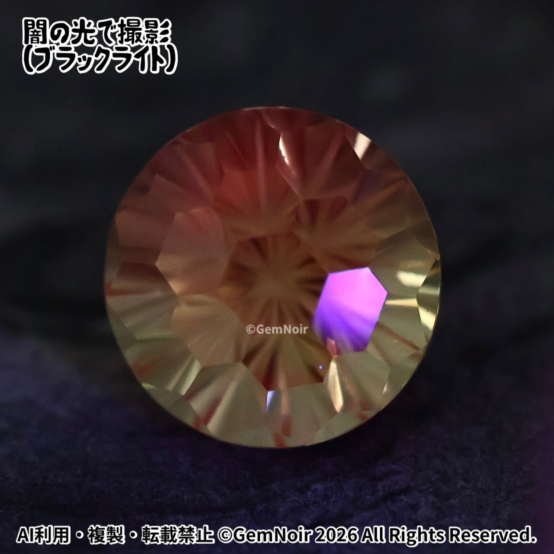 バイカラーの合成サファイア ルース|果実の女神の宝珠《イエロー系・光属性》|花火カットの魔石|Hand cut|Yellow bicolor synthetic sapphire | Fireworks cut | Fantasy Gem|品番:PKYV-202412