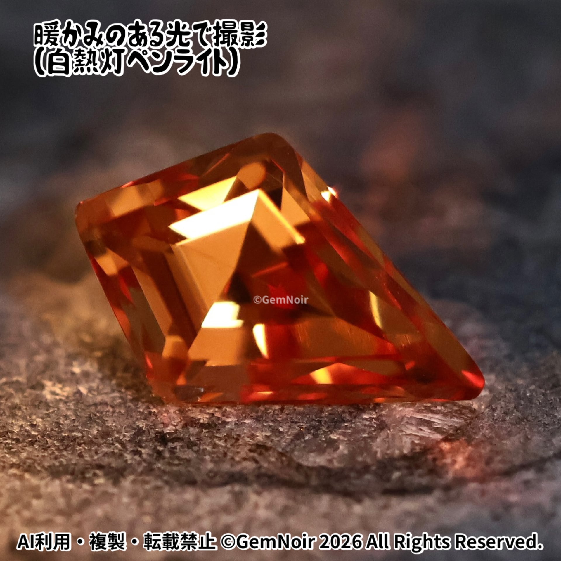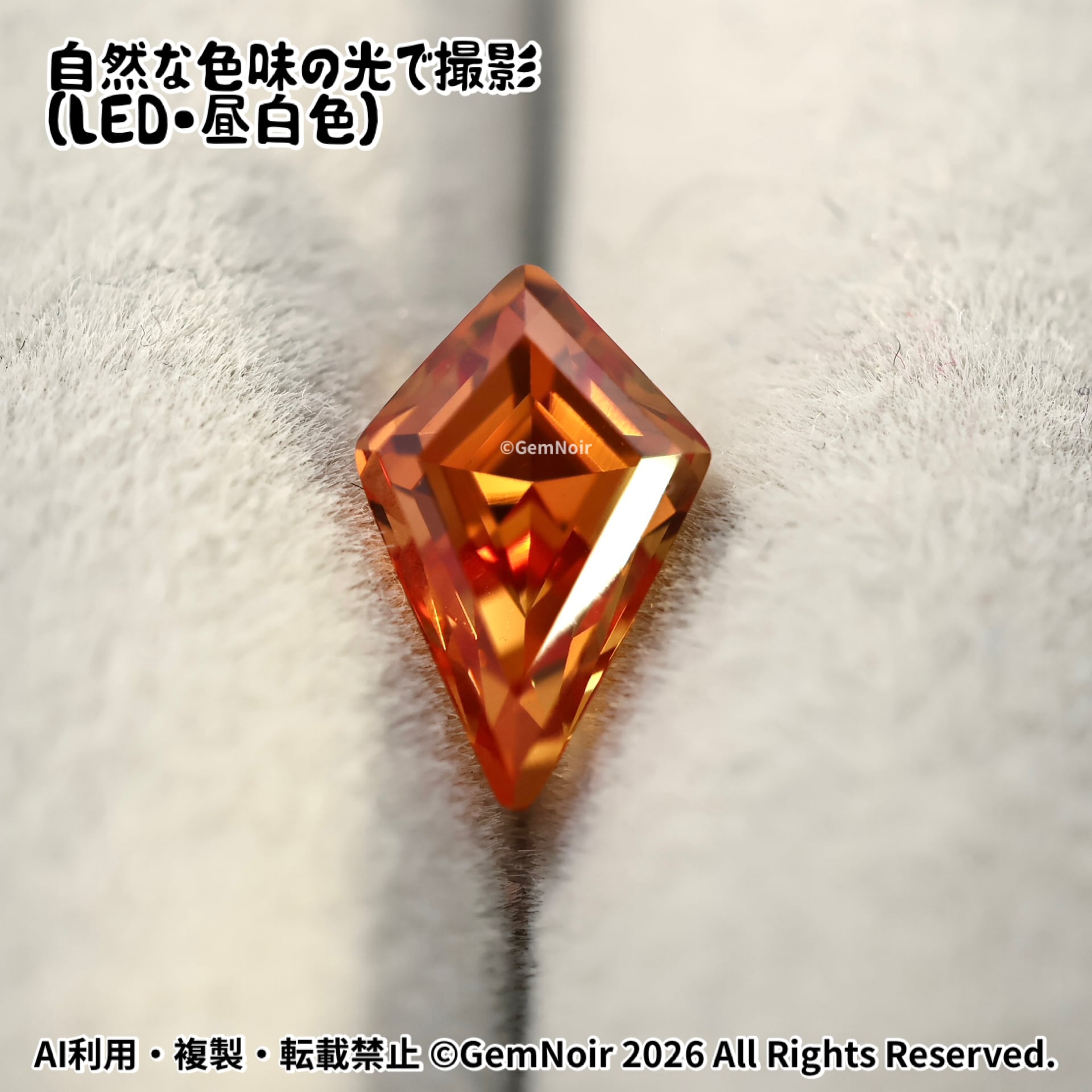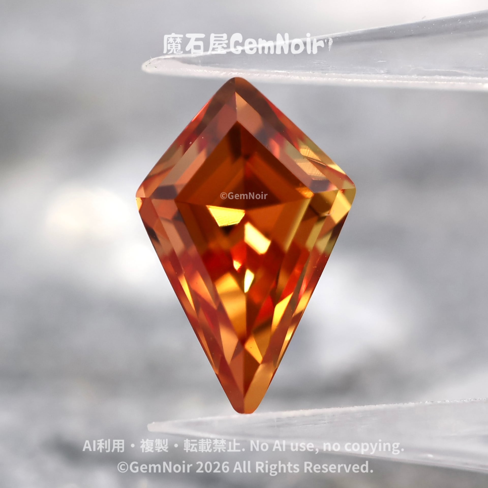 陽だまりの盾|合成サファイア ルース|オレンジ系・火属性|盾のカットの魔石|Hand cut|Orange Synthetic Sapphire | Shield Cut | Fantasy Gem|品番:K05L-202412