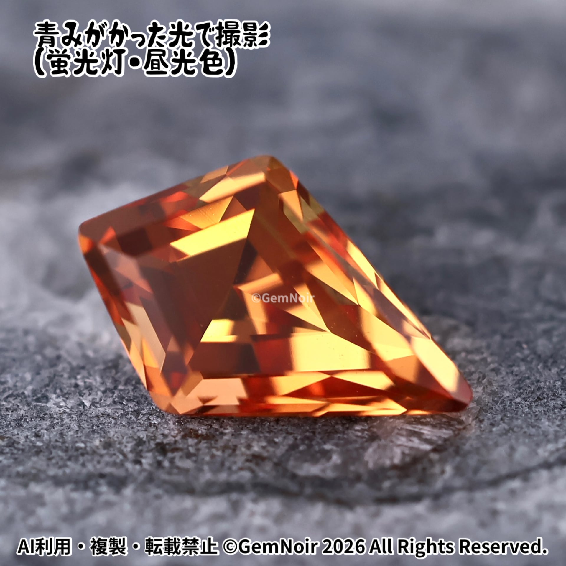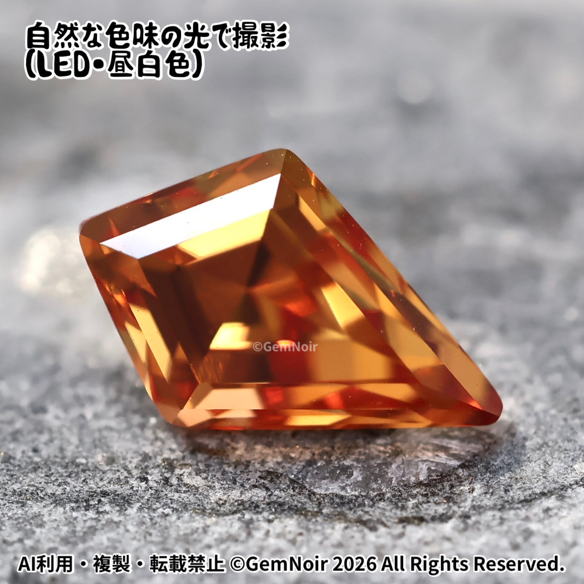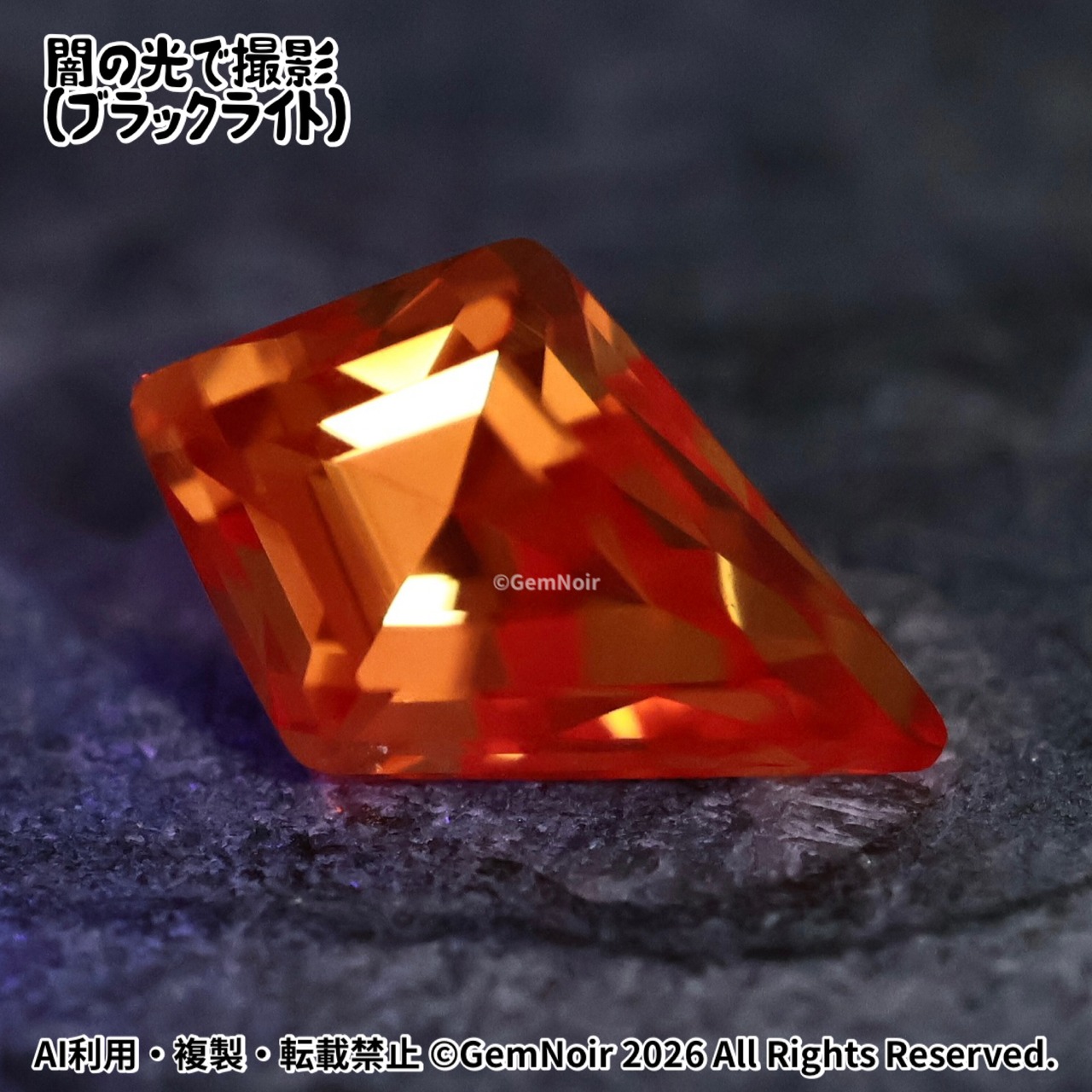 陽だまりの盾|合成サファイア ルース|オレンジ系・火属性|盾のカットの魔石|Hand cut|Orange Synthetic Sapphire | Shield Cut | Fantasy Gem|品番:K05L-202412