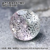 花の妖精たちが眠る満開の花|バイカラーの合成サファイア ルース|ピンク・グリーン系・光属性|満開の花のラウンドカットの魔石|Hand cut|Pink and green bicolor synthetic sapphire | Round cut with a blooming flower design | Fantasy Gem|品番:EGNU-202505